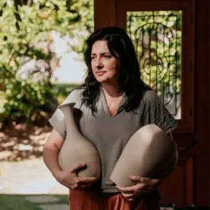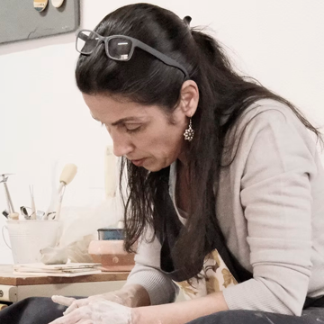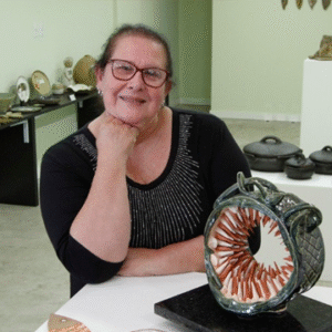 Flavia Pircher é ceramista e pesquisadora de técnicas de queima, com destaque para monoqueima, Raku, queimas primitivas e processos de transferência de imagem sobre cerâmica. Atua em oficinas, demonstrações e projetos coletivos que unem prática artesanal, experimentação estética e sustentabilidade no fazer cerâmico.